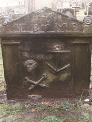 - Sprials in top corners; Skull; Crossed Bones; Anchor; Hourglass on its