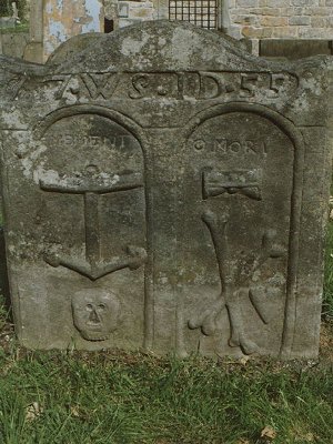 Memento Mori; Anchor; Skull; Hourglass on its side; Crossed bones; Heart;