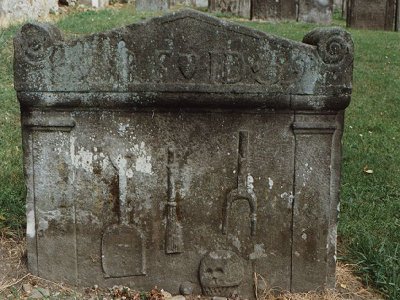 Spirals in top corners; Broom, Shovel & Weedock (Tools of Maltster/Distiller); Skull; Crossed Bone;